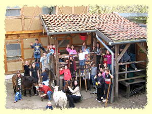 | 2006 - Ab März sind die Auszubildenden des OSZ wieder vor Ort und arbeiten bis Anfang Dezember am Innen- und Außenputz. Im April beteiligen wir uns an der Aktion "Verrückt nach Familie" - Rama fördert die 100 schönsten Projekte für flexible Kinderbetreuung mit je 5000 €. Unter mehr als 6000 Bewerbern wird der Kinderbauernhof nicht berücksichtigt. Im Juli beginnt das OSZ Bautechnik I mit dem Bau von Fenstern und Türen, die im November und Dezember des selben Jahres eingebaut werden. Im Juli bewerben wir uns um den Stiftungspreis 2006 "Der beste Spiel- und Freizeitplatz - attraktiv, innovativ, kostengünstig". Wir erhalten eine besondere Anerkennung und den "inoffiziellen 2.Preis". Die 15.000 € Preisgeld für den 1.Platz gehen an ein Projekt in München. Im September beantragen wir eine Sonderzuwendung für die Herstellung eines Abwasseranschlusses und erhalten eine klare Ablehnung. Im Dezember stellen wir einen Antrag auf Bewilligung von Geldern aus dem "Mannesmann-Verfahren" und werden bei mehr als 4000 Bewerbungen nicht berücksichtigt. Zur gleichen Zeit beginnt die Universal-Stiftung Helmut-Ziegner mit der Verglasung der Fenster und Türen für unser Spielhaus. | ![]() |