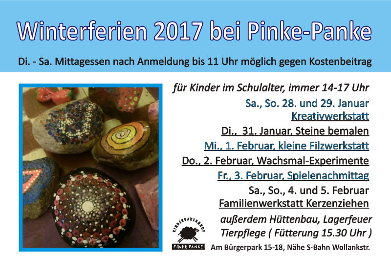 Ab 14 Uhr bieten wir wieder zusätzlich verschiedene Ferienwerkstätten an – siehe Winterferienprogramm:
