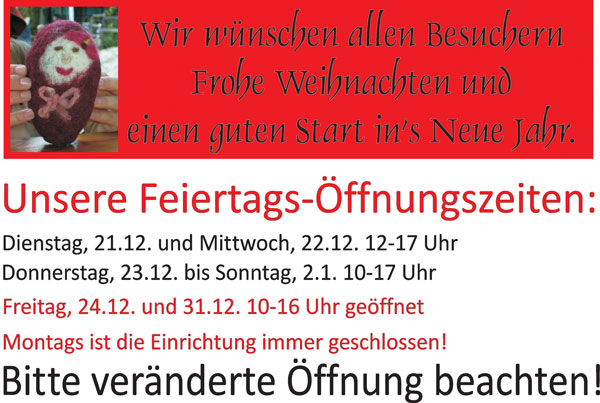 Nähere Infos zum Programm der Feste und Ferien gibt es ca. einen Monat vorher unter "Aktuelles".