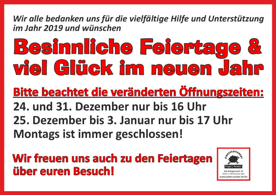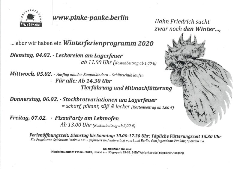 die Absage unseres Frühlingsfestes Ende März, des Kinderbauernhofgeburtstags Mitte Mai, sowie weiterer Veranstaltungen, vor allem aber das Ausbleiben der vormittäglichen Gruppen aus Kitas und Schulen bedeuten für den Kinderbauernhof Pinke-Panke erhebliche Einnahmeverluste, die vom Bezirk nicht ausgeglichen werden können.